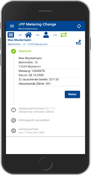 Digitale Wechselaufträge beinhalten eine für Mobilgeräte optimierte Aufstellung der Adressen, Vertragspartner, Plausibilitätsgrenzen, Zählerstände und -daten. Die Kartendarstellung mit GPS-Navigation und Kalenderfunktionen erleichtert die Organisation der Gerätewechsel.