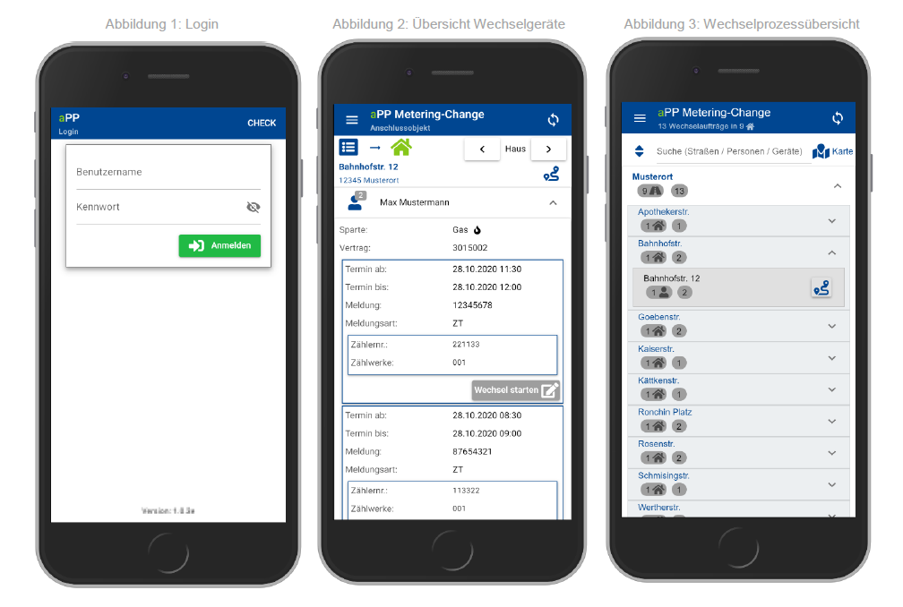 Nutzen Sie für den Gerätewechsel im Netzmandanten eine moderne aPP auf kostengünstige Smartphones. Über einen Web-Service (SOAP-Service) wird eine direkte Verbindung zwischen Ihrer Verbrauchsabrechnung und Smartphone/ Tablet aufgebaut. Sobald eine Internetverbindung vorhanden ist, können Ablesedaten mit dem Backend synchronisiert und ggf. neu erzeugte Ableseaufträge übertragen werden.